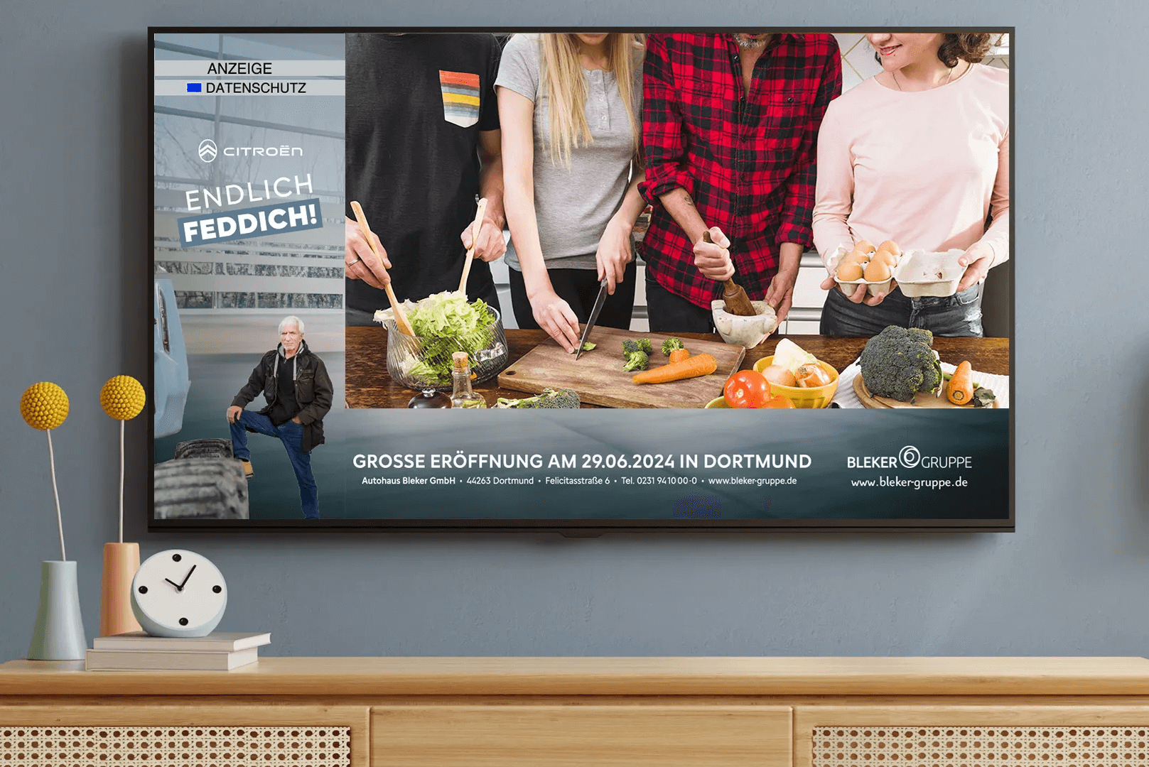 Das Beispiel Bleker zeigt eindrucksvoll, wie wirkungsvoll diese Art der Werbung sein kann. Die ATV-Kampagne zur Eröffnung in Dortmund ergänzte die Plakat- und Digitalkampagne nicht nur – sie verstärkte sie. Die Botschaft war in der Region präsent, sichtbar und hoch aufmerksamkeitsstark: im Stadtbild, im digitalen Raum und auf dem TV-Bildschirm. Genau dieser Media-Mix macht Autohäuser heute stark.